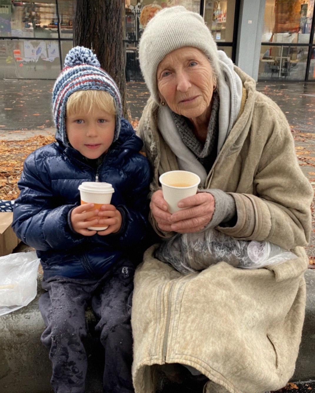 That’s when I saw them — an older woman and a boy standing at the edge of the parking lot. She held his hand tightly. He leaned against her, shivering. Their clothes were clean but worn, the kind of worn that comes from life being harder than it should be.