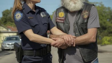 The roar of my Harley faded as red and blue lights flashed behind me on Route 66. I pulled over, rain starting to spit against the leather on my shoulders. When the officer stepped out of her cruiser, I froze. Officer Emily Carter. That name hit me like a punch…